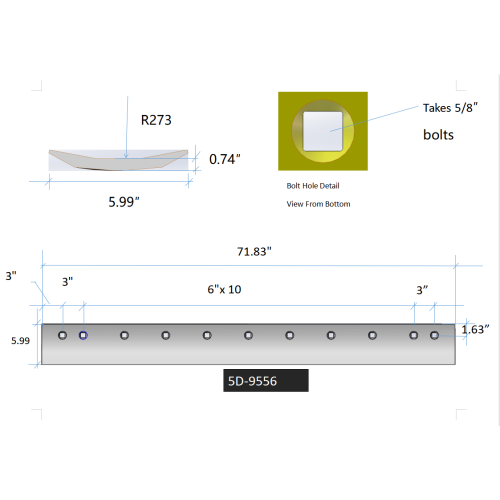 5D9556 - Grader Blade HT 6'x6x3/4 - 13x 5/8 holes