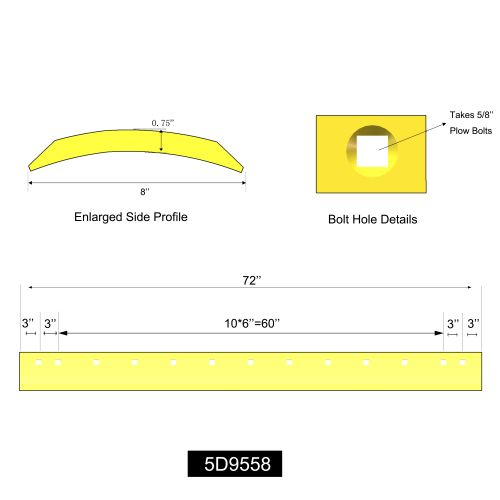 5D9558 - Grader Blade HT 6'x8x3/4 - 13x 5/8 holes