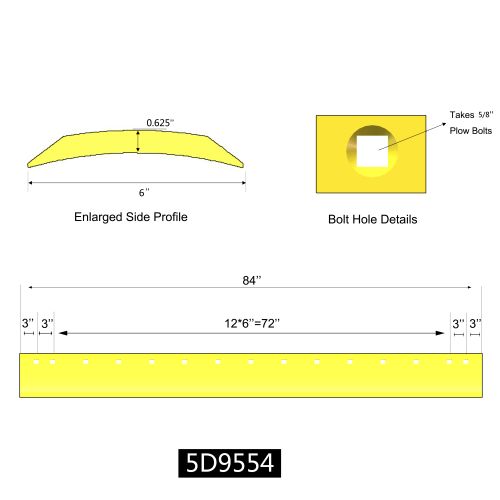 Caterpillar style 5/8" x 6" x 7' curved, heat treated, 15 hole grader blade; takes 15 - 5/8" x 2 3/4" (625x275) plow bolts and 15 - 5/8" (625 hex nut) hex nuts