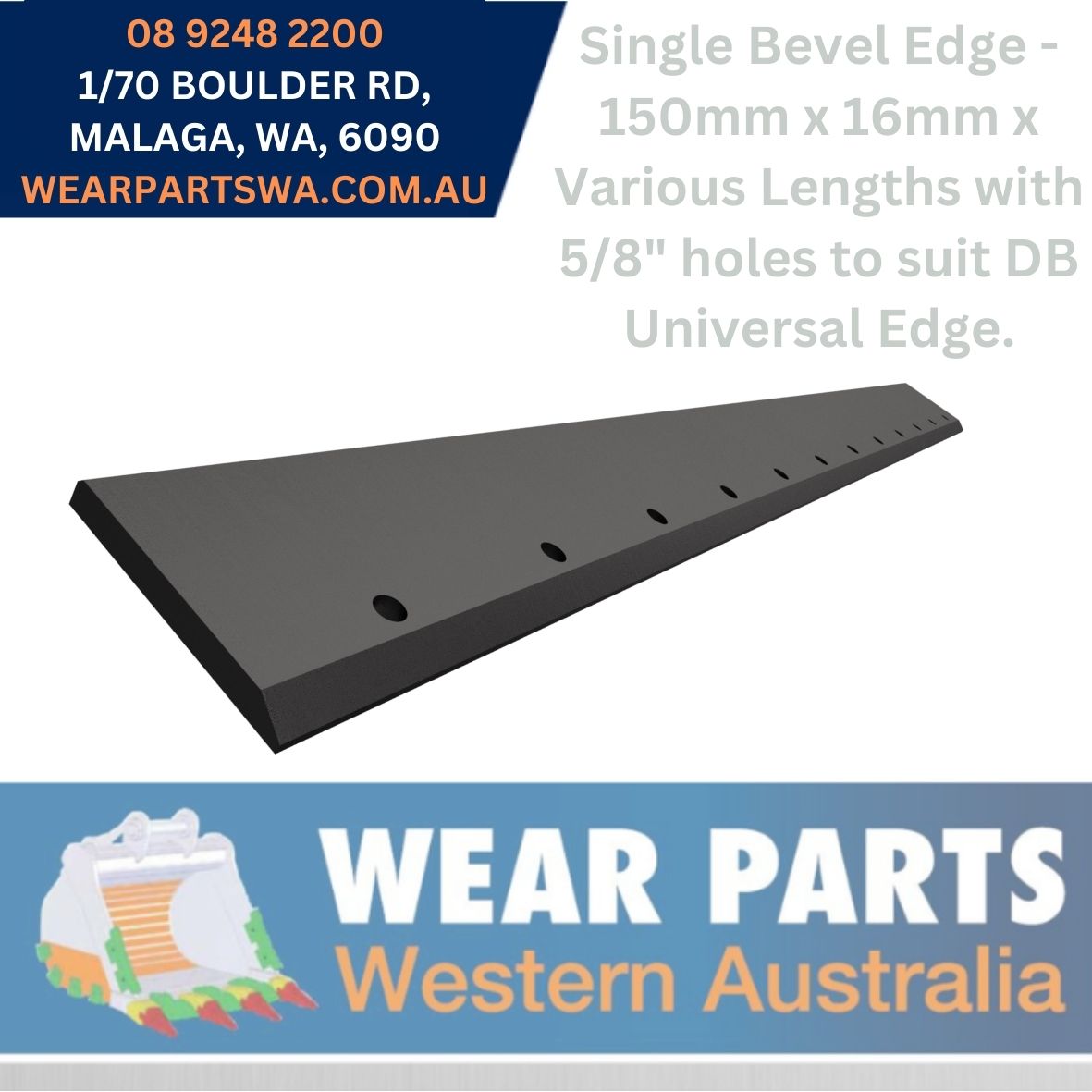 Single Bevel Weld On Edge with 5/8 Holes - 150mm x 16mm x Various Lengths